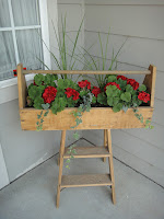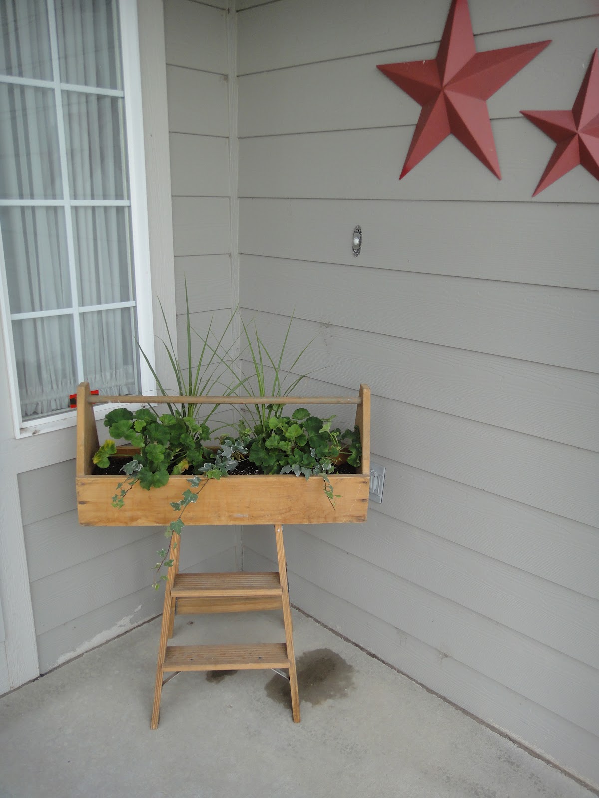 A couple of weeks ago I wrote about purpose and re-purpose. I shared with my readers of the tool box I re-purposed and placed on my front porch. I had purchased an ivy plant, a spikey plant of some sort, and red geraniums to fill the tool box.