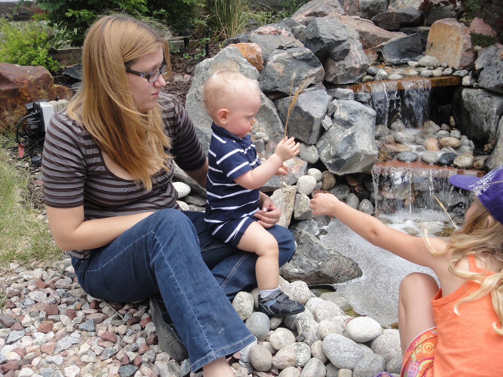 One of my favorite elements in our backyard is the water fall. I enjoy sitting on the deck in the morning, drinking a cup of coffee, listening to the birds, watching the sunrise, and hearing the sound of water flowing.