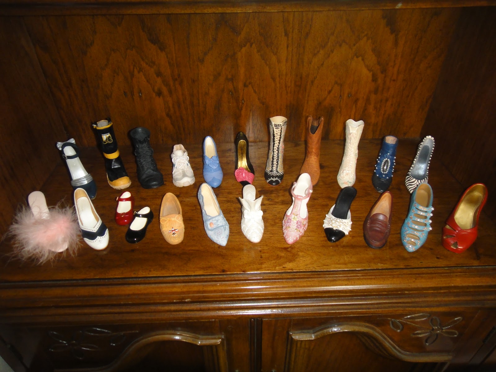 My Mom has a few collections. Miniature oil cans, thimbles, Bybee pottery, and my favorite, Just the Right Shoe figurines by Raine.
