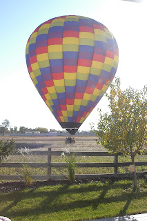 I’ve mentioned that living on the “prairie” in eastern Colorado has brought with it some excitement. It was a beautiful fall day. The front door was open and a fresh breeze was flowing through the house. At one point, I looked outside and a large hot air balloon filled the entire doorway.