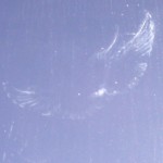 As I walked through the lobby one day, I noticed the windows above the main doors had an outline of a bird. Clearly a bird had flown into the window and left a mark.