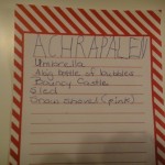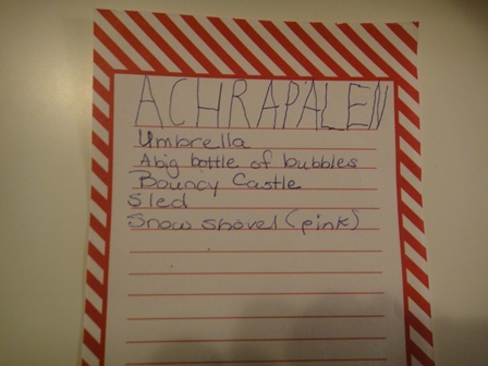 Finally, believing she had done her best to let everyone know what she wanted most for Christmas, she handed the list to me. In large letters, she had written, A CHRAPALEN. She then asked if I would finish the list.